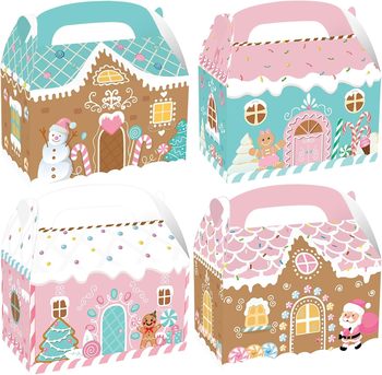 12 adet pembe noel tedavi kutuları Gingerbread ev çerez kutuları noel karton Gable Goodie hediye kutuları için parti Favor malzemeleri